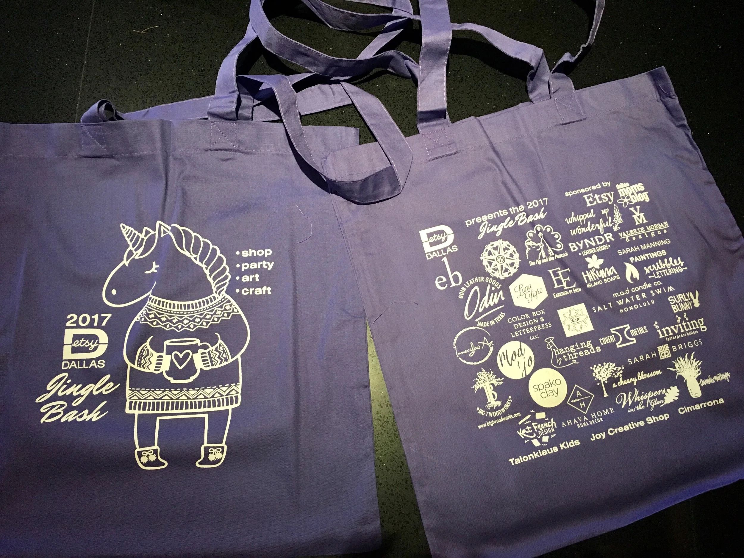 Bring a tote bag for the goodies you buy to keep your hands free to shop all the gorgeous handmade pieces our artists will have at the Jingle Bash. We will have extra totes for sale but supplies are limited.