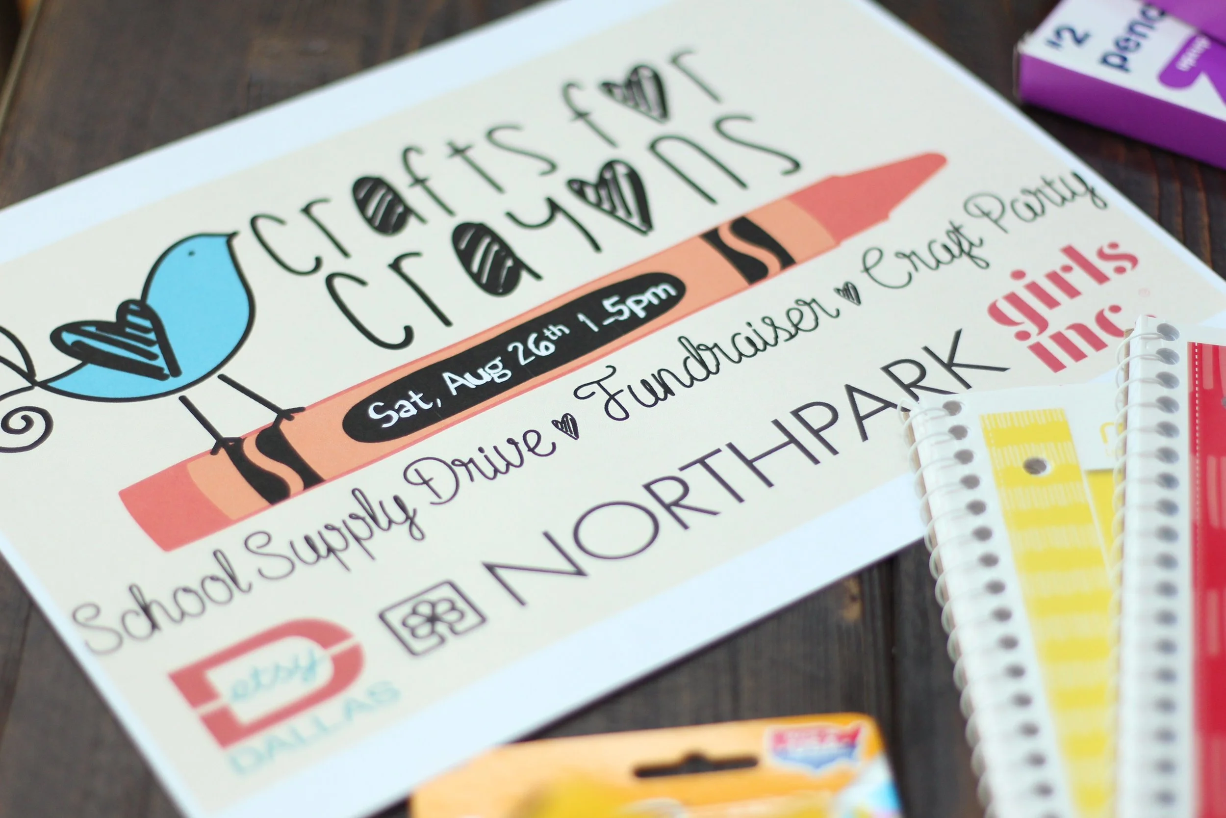 We are hosting our 4th annual Crafts for Crayons school supply drive and craft event at NorthPark Center from 1-5 p.m. on Saturday, August 26. Find us in the NorthCourt between Nordstrom and Macy's.